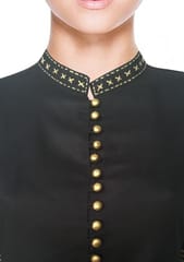 Black and golden foil printed kurta, has a mandarin neck, three quarter sleeves, side slits.