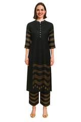 Black and golden foil striped printed kurta with palazzo (2pc set)