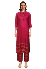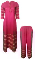 Maroon and golden foil striped printed kurta with palazzo (2pc set)