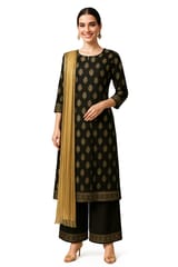 Black and golden foil paisley printed kurta with palazzo and dupatta (3pc set)
