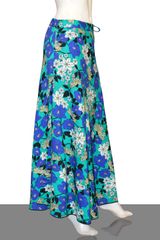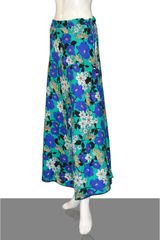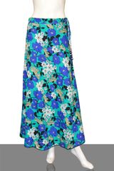 Acqua green floral printed diva skirt with beaded tassels, has a waistband with drawstring closure, side zipper closure, and flared hem. Has a soft matching inner voile (mulmul) lining.